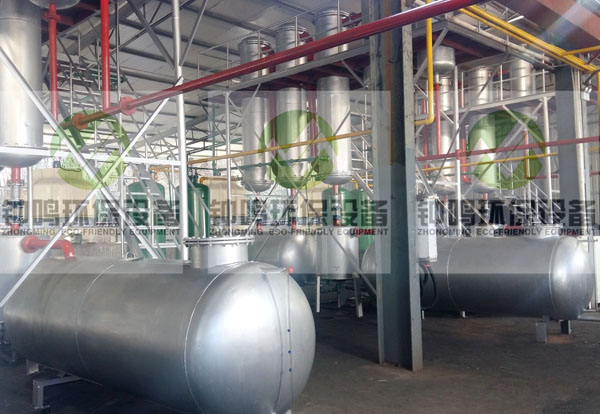 第2步: 加熱 ---- 可使用塑料油或不凝氣對反應(yīng)釜進行均勻加熱,加熱約2小時左右溫度逐步升至200度左右裂解油氣通過反應(yīng)釜中心的出油氣口進入冷卻系統(tǒng)液化成油進入中間油罐。